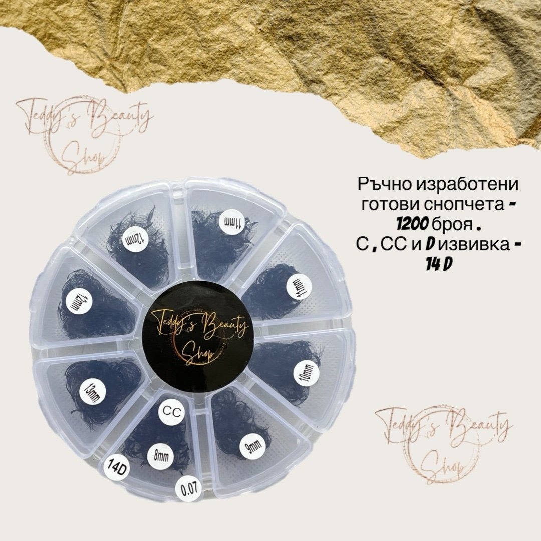 Ръчно изработени готови снопчета 1200 броя микс – 14 D – C , CC и D извивка