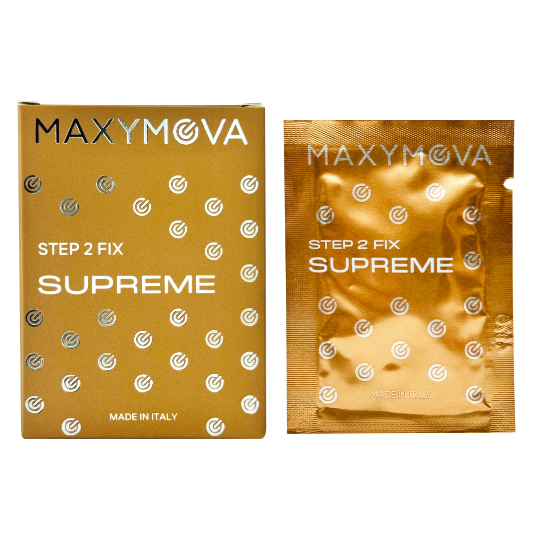 Разработен в сътрудничество с водещи ламимейкъри в Италия, MAXYMOVA Supreme Fix е иновативна формула, която оптимизира и подобрява професионалните ламиниращи процедури.